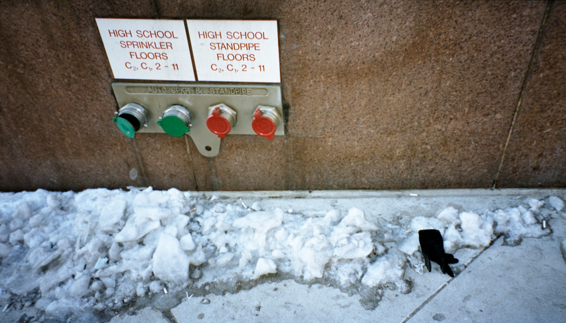 The pleasures related to taking photos of stray gloves were multiple. The winter was colder than previous ones and there was lots of snow: all good variables in creating the need for gloves. At first, I was amazed at how many stray gloves there were in the city. This struck me as counter-intuitive: if it is cold and snowy you wear gloves, so how could they constantly be falling off your hands? And yet, and of course, people are constantly taking on and off their gloves throughout the day. Putting in a quarter at the car meter, getting into or out of a cab, opening a door with one hand while holding a bag in the other--these actions and countless others lead to stray gloves.