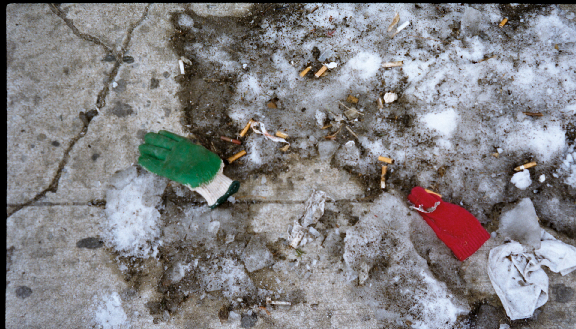 In 2002 and 2003 I walked the streets of New York City and took photos of stray gloves. I used a Canon Elph2 camera and had the film processed at my local drugstore, a Duane Reede. None of the photos were staged. My own gloves were not featured here either.